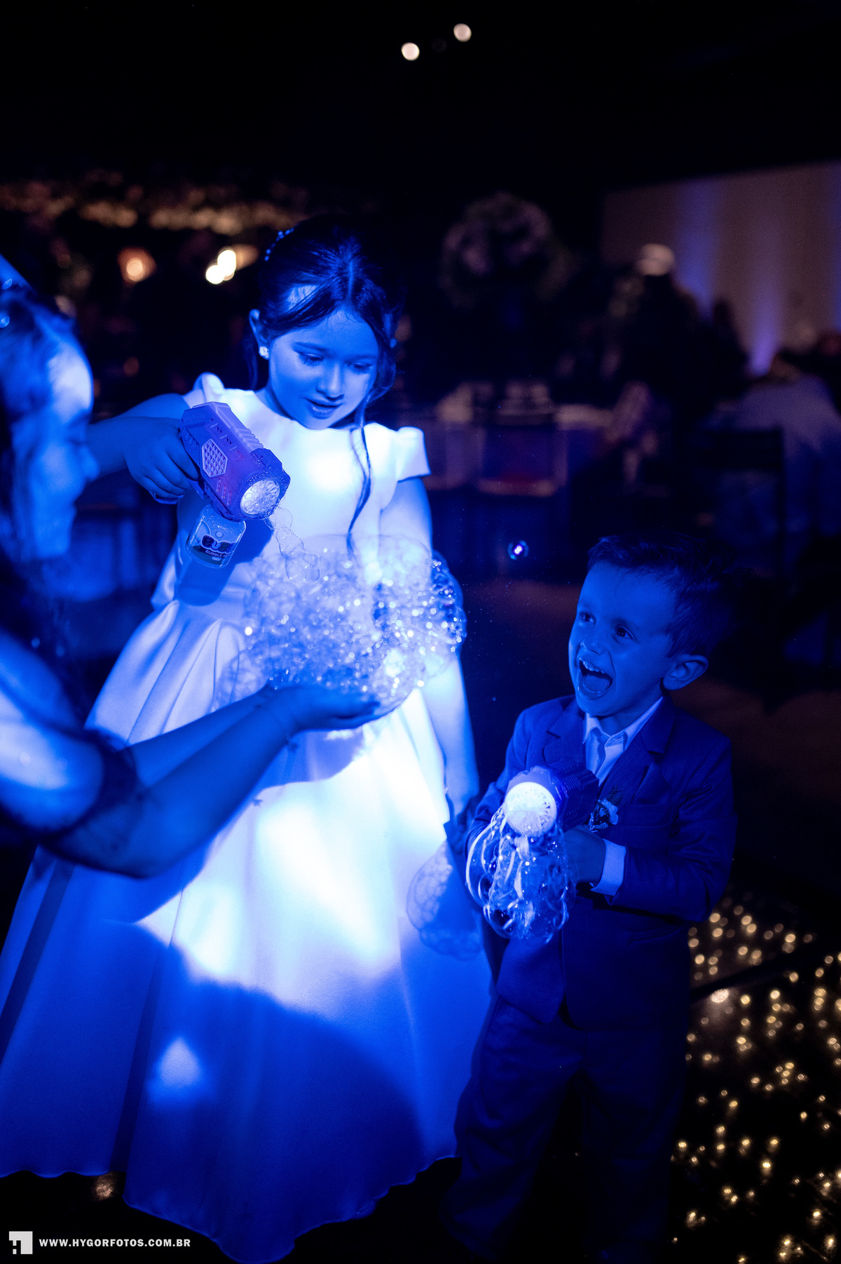 e das crianças correndo,